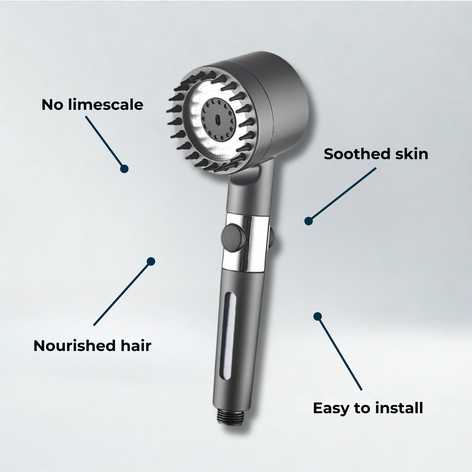 The Purify™ shower head removes limescale, chlorine, heavy metals, and other impurities from your shower water—helping improve your skin, hair, and overall well-being.